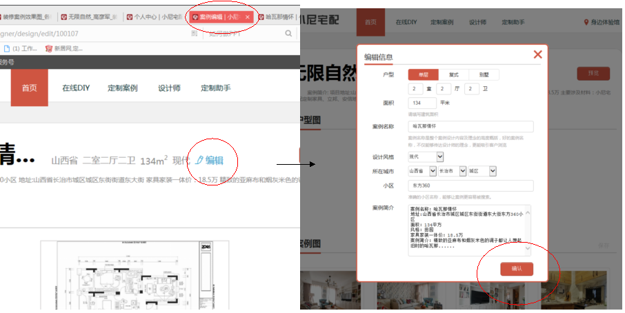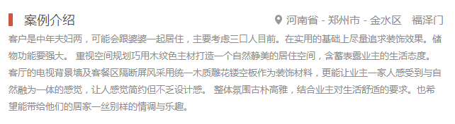 3、案例簡介需包含:項目名稱、地址、家裝家具一體價 (價格標準:阿拉伯數字加萬元) 、案例簡介。例如下: