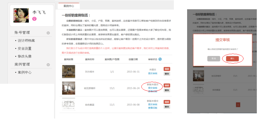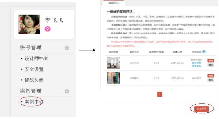 1).設計師登錄點擊昵稱進入個人信息管理中心。