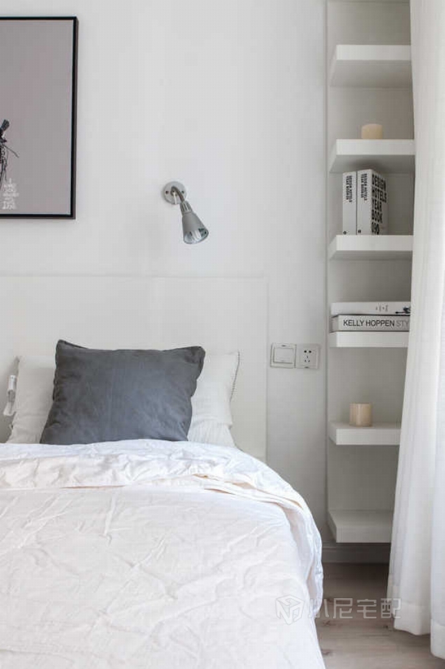 灰白調(diào)的結(jié)合將睡眠空間的寧?kù)o氛圍渲染得恰到好處。