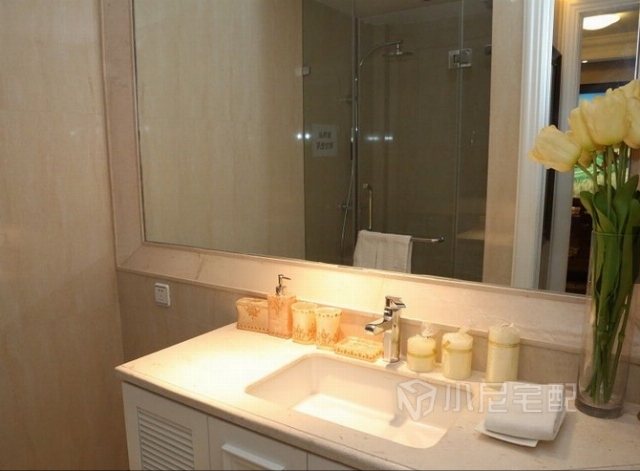白色的浴室柜搭配沉穩(wěn)的大理石臺面,時(shí)尚優(yōu)雅。