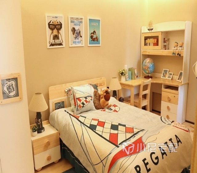 延續(xù)客廳的古典紅木色,加藍(lán)色為配色。
