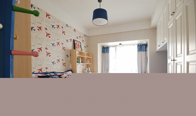 空間跳躍的色彩搭配淺色系的家具,增加了兒童房的活力。