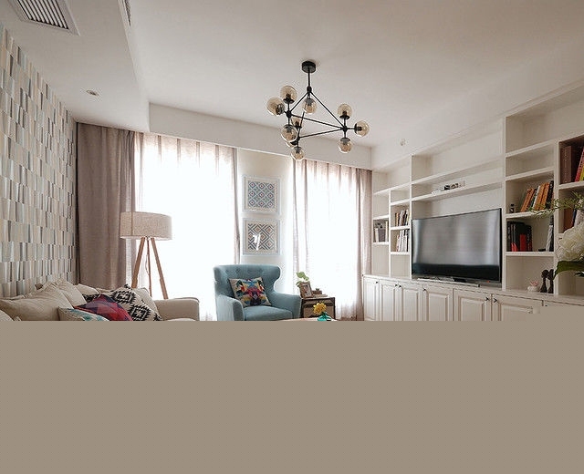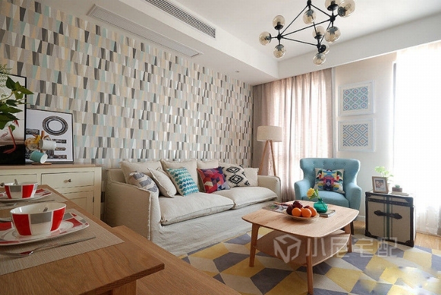 中性色的家具,原木的紋理,抽象的圖形營(yíng)造出恬靜而又輕松,溫馨而又活潑的氛圍。