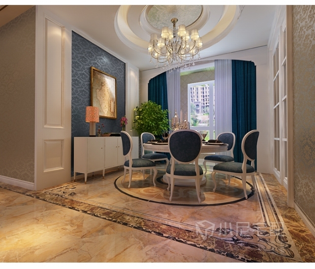 客廳藍色窗簾和水晶燈的搭配讓整體色調(diào)清爽一些。