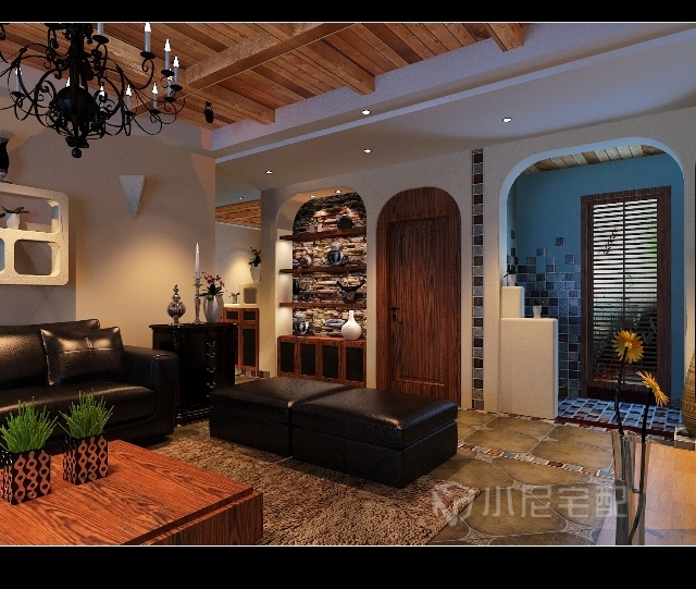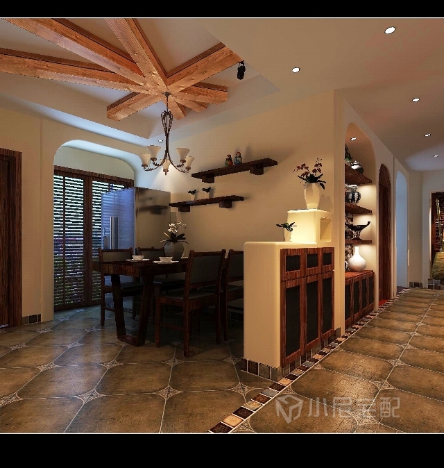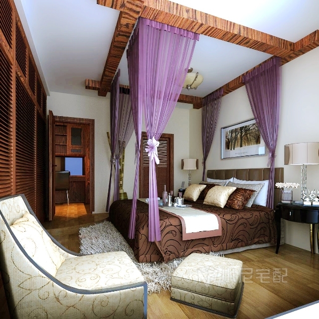 室內多采用對稱式的布局方式,格調高雅,造型簡樸優美,色彩濃重而成熟。