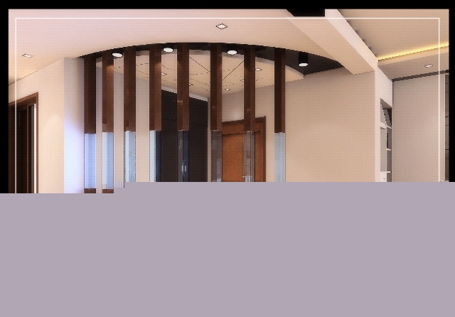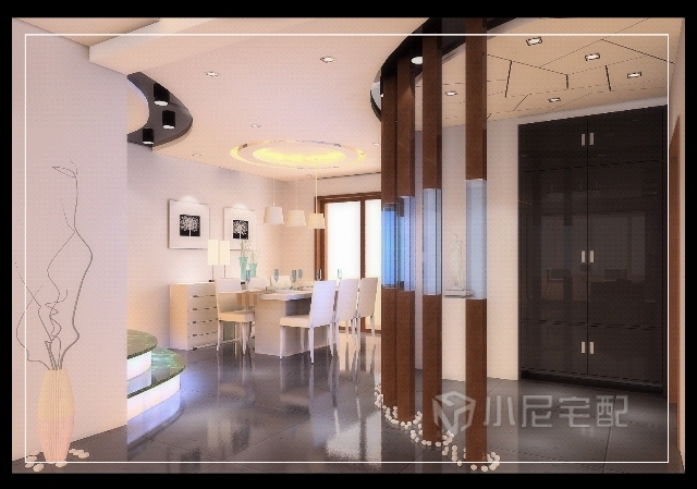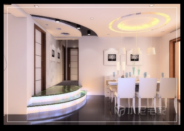 餐廳 走廊吊頂都用曲線來裝飾,臺階和吊頂形成照應