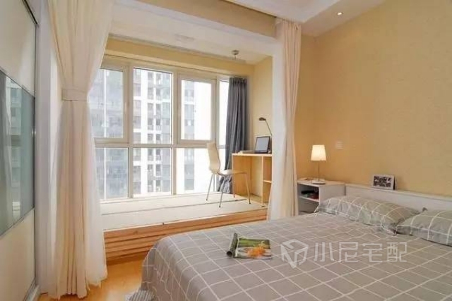飄窗兼工作區,周末可以躺在上面聽聽音樂看看書,多么愜意的一件事。
