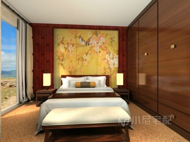 臥室在色彩方面秉承了傳統古典風格的典雅和華貴。