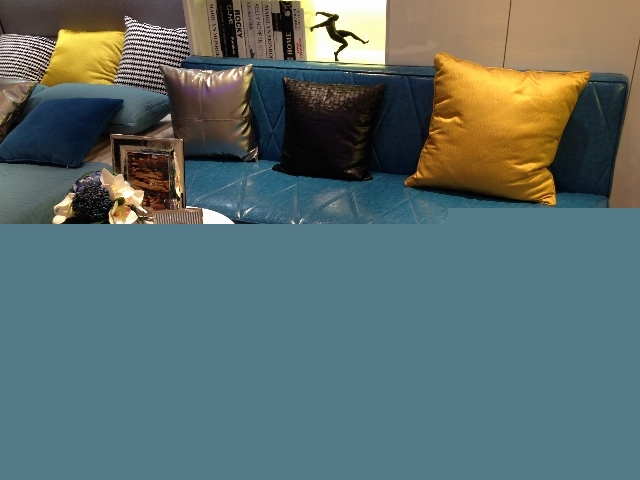 客廳皮質沙發,三種經典顏色搭配,彰顯活力。