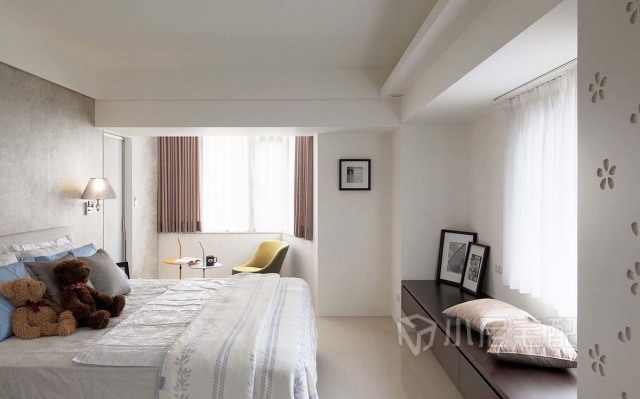 主臥干凈大氣,光線很好,特別開設了一個休息閱讀區。