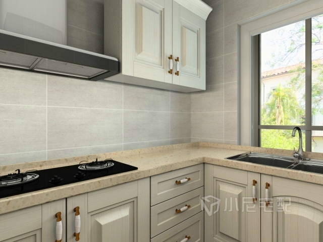 白色的櫥柜搭配黃色的大理石臺面,使廚房和整個空間更加的搭配。