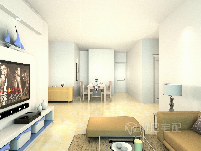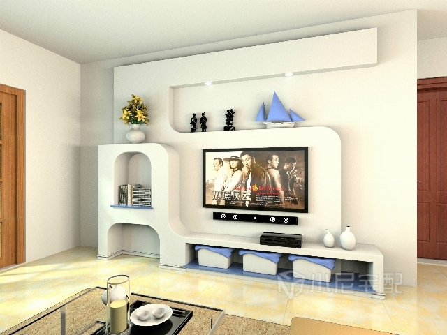 白色的背景墻搭配一些飾品,加上淡黃色的地磚,顯得溫馨,潔凈。