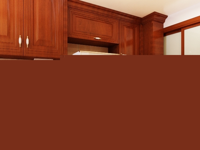此細(xì)節(jié)突出了兩邊吊柜高低的收口問(wèn)題,兩個(gè)區(qū)域可以用此方法。