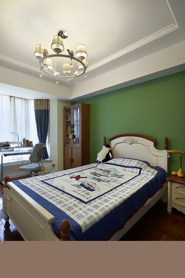 客戶特別喜歡花草,家里到處可見,主臥有種唯美小清新的感覺,屬于小女人的幸福。家裝家具一體價(jià):24萬。