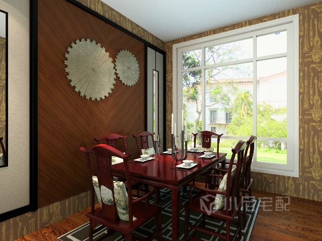 紅色的餐桌餐椅,體現(xiàn)出中國風(fēng)韻搭配餐廳背景墻,更富有中式韻味。