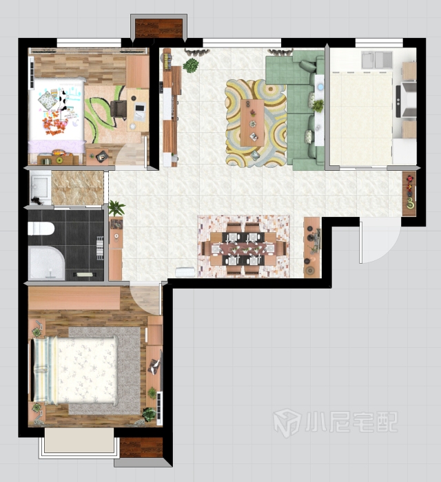 業主喜歡現代風格,所以本套案例采用了現代簡約的風格進行設計,相對其他風格而言,簡約更為清新、簡練,也更符合中國人內斂的審美觀念。家裝家具一體價:10萬。