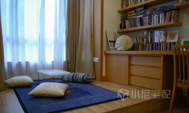 超出客廳的沙發(fā)墻,放置魚缸裝飾,給生活添色彩。