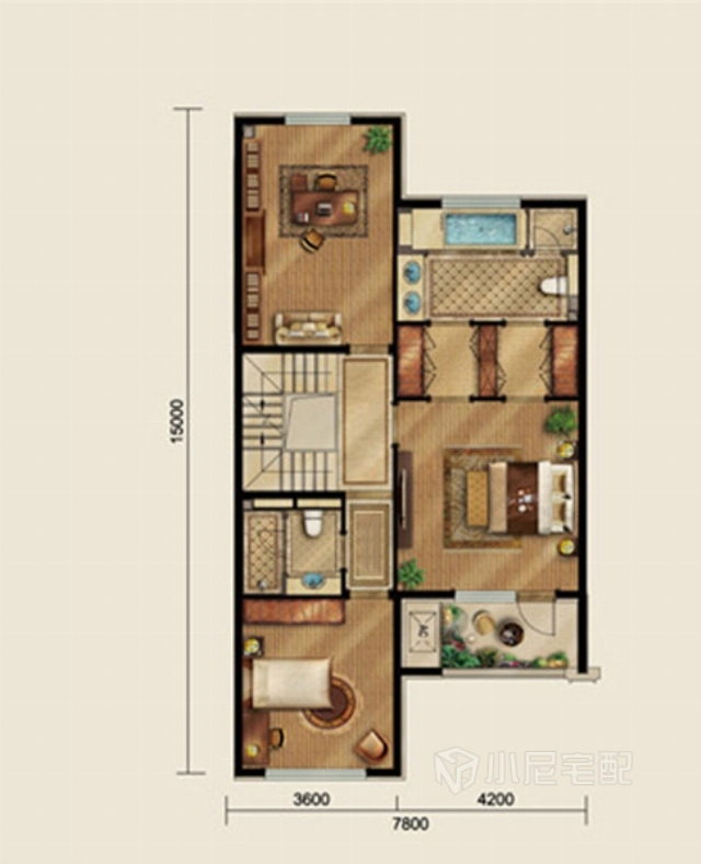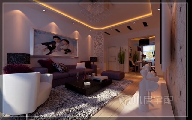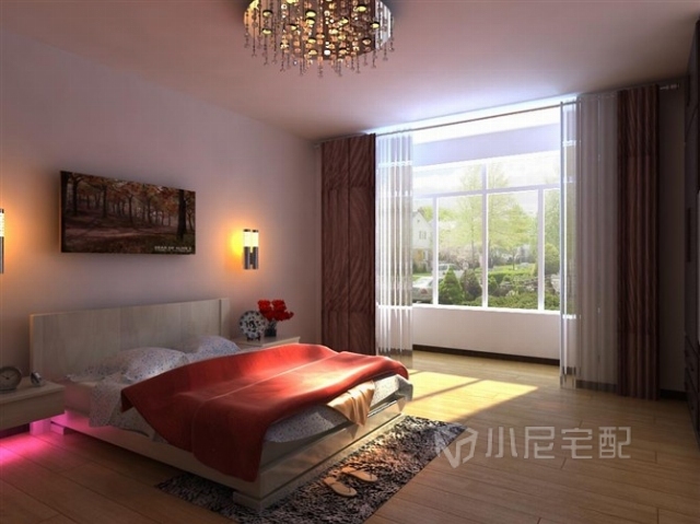 干凈立面上搭配深色背景墻,加上后方光源的烘托,突出主臥氣勢。