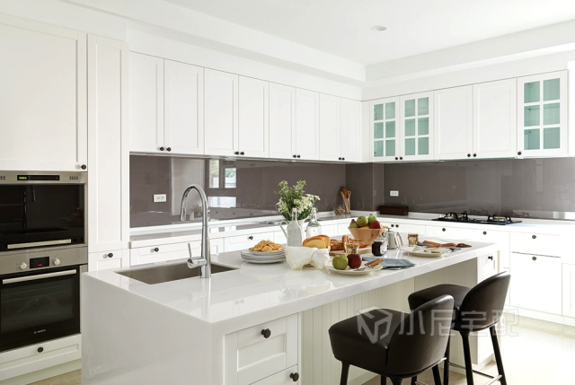 廚房很干凈,中間還有一個用來平常調(diào)菜的小倒臺。