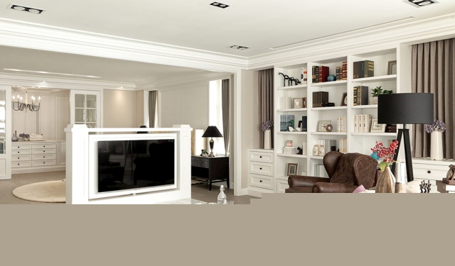 沒有誰會認(rèn)為電視機的擺放很突兀,這反倒是一個很巧妙的格局設(shè)計。