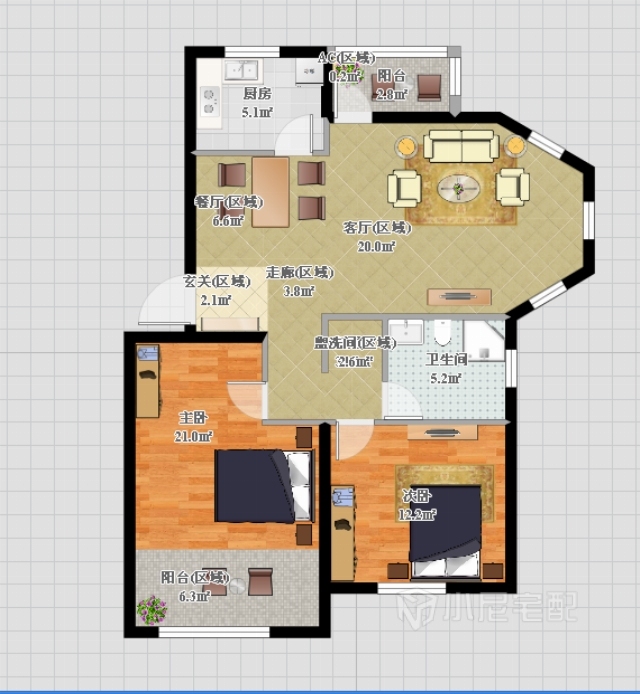 90㎡#兩室兩廳一衛(wèi)#現(xiàn)代