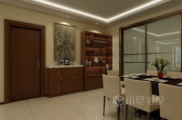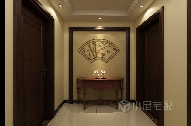 入戶玄關是非常重要的場所,氣場所在,矮柜的填充使得玄關更加充實,而配套的裝飾讓空間更顯豐富。
