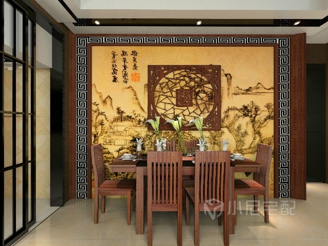 餐廳采用水墨畫(huà)裝飾,讓家居充滿書(shū)香氣息。