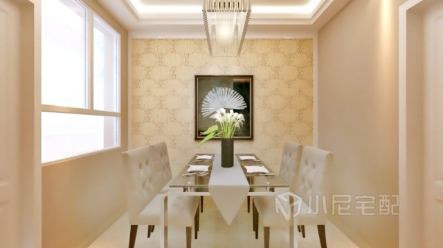 鐵藝燭臺吊燈上結合水晶裝飾在餐廳里渲染出濃濃的浪漫情調。