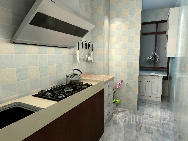 廚房空間顯得大氣潔凈,棕色的櫥柜更有生活味道,灰色的廚電散發著金屬光澤,讓廚房看上去不會太局促。