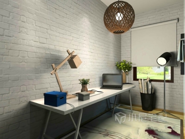 仿磚壁紙,拉絲吊燈,一個專業的工作空間誕生。