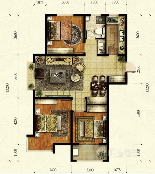 106㎡#三室兩廳一衛#混搭