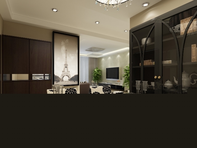 鏡面的餐桌和玻璃酒柜,高格調的就餐環境輕松彰顯,整體顏色與客廳相互配合,渾然一體。