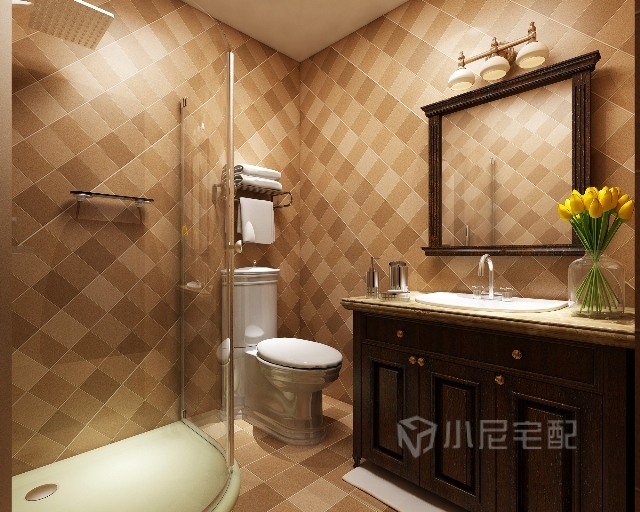 統一的墻磚和地磚搭配,使衛生間更加整齊劃一,獨立的淋浴房兼具方便與私密性,高端的木質洗手臺使整個格調又得以提升。在最私密的空間,有邦度衛浴帶來的舒適體驗。