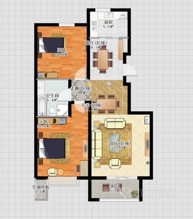 這是個三口之家,夫妻兩人結婚沒多久,他們的生活充滿時尚個性,有一個可愛的小孩。運用各種富于質感的裝飾材料及家具配飾,同時不需要任何思想束縛,喜歡隨性的居家空間。
