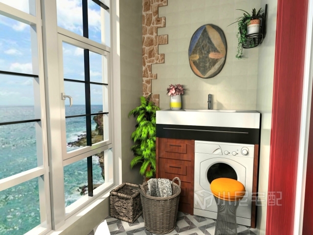 洗衣臺在陽臺,很方便。