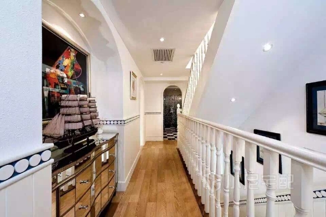 白色的欄桿和墻壁使空間顯得干凈整潔,裝飾物的擺放更起點綴作用。