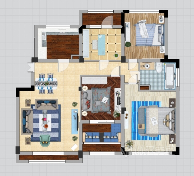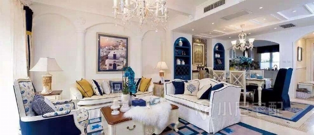 漂亮別致的地中海風情,色彩清爽明亮,獨特的造型和設計使人心境開闊,白色的吊頂,藍色的家居,充滿沿海風情的裝飾物,將地中海風格表現的淋漓盡致。