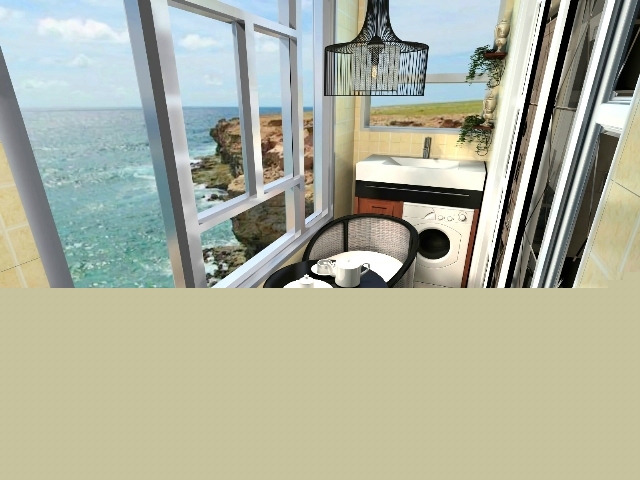 沒事來陽臺喝喝茶,旁邊有洗衣機,很方便