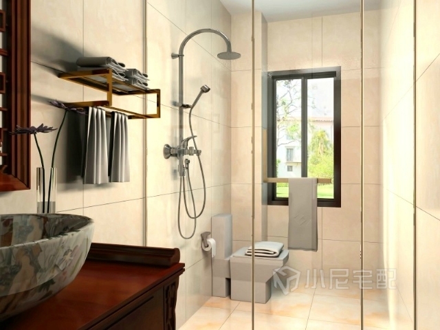 干濕分離的衛(wèi)生間,也使用了充滿古色古香的洗臉臺(tái)。