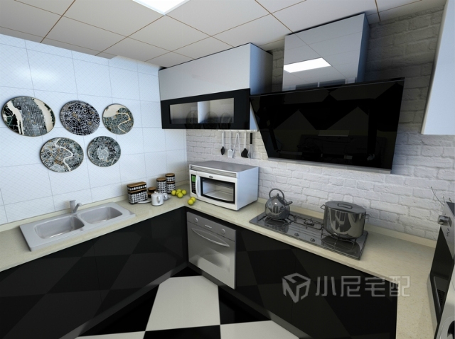 廚房儲物空間強大,黑色櫥柜,讓廚房變得整潔很穩