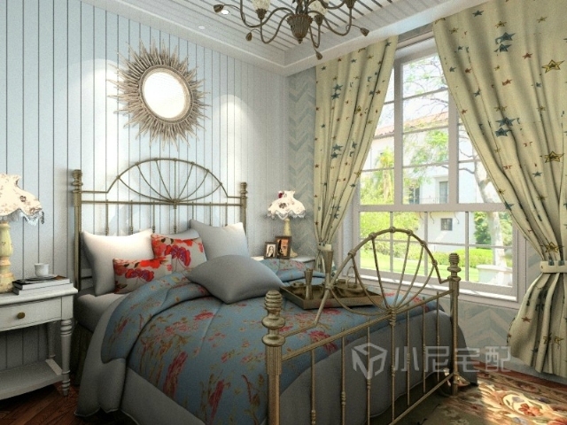 空間主要以藍色白色為主調,精美的裝飾物使空間有錦上添花的作用,使人眼前一亮,整個氣氛既溫暖又休閑。