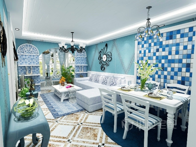 地中海風(fēng)格以藍(lán)色為基調(diào),有文藝、清爽感,常見的燈塔、帆船、海星等小裝飾也給家裝增添了不少海洋清新感。整個(gè)家居設(shè)計(jì)展現(xiàn)蔚藍(lán)色的浪漫情懷,海天一色、艷陽高照的純美自然氣息。家居家裝一體價(jià):15w。