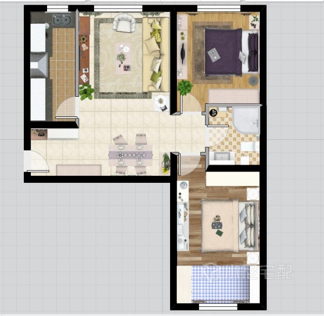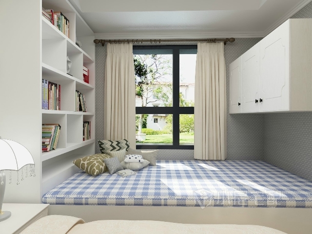 增加臥室的利用率,設計了榻榻米搭配書柜和吊柜,增加了儲物空間。