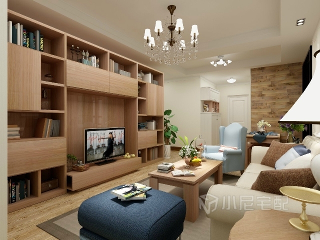 定制電視柜極大的利用了一整面墻,增加了儲物功能。