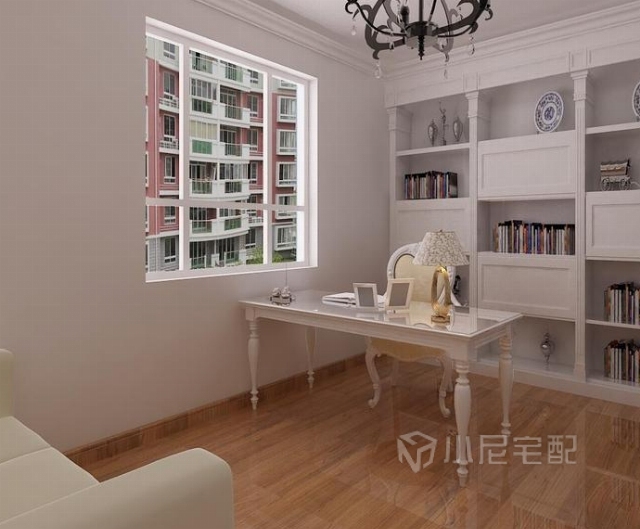 書房主要以灰白為主,給人一個安靜閱讀的地方。