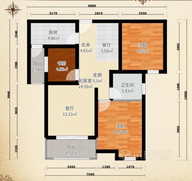 電視柜組合充分的利用空間,讓電視墻不顯得單調。