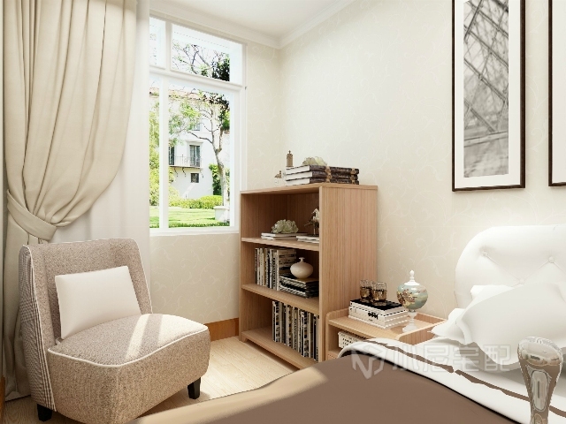 在窗前放一個小書架,一個舒適的沙發,休息時坐在窗前看看書,十分愜意。
