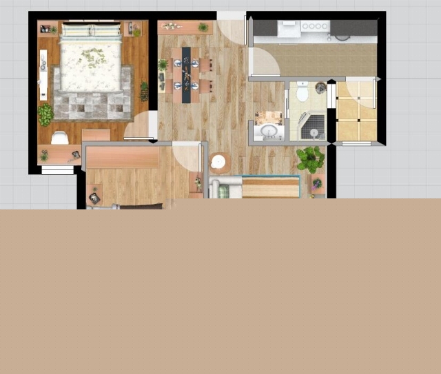 在臥室的一角放上書桌和書柜,合理的利用房間的缺角。