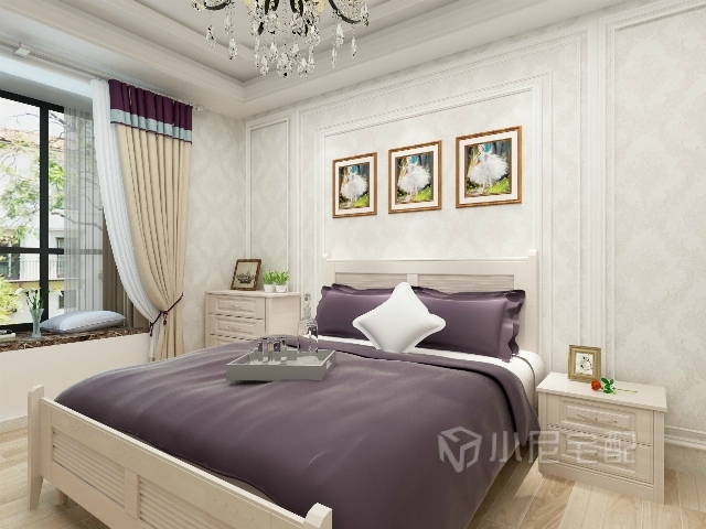 歐式的背景墻和裝飾畫,與客廳餐廳配套的床和柜,顯得整體協調統一。