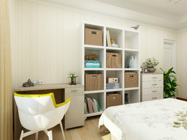 書桌和書柜,在臥室里增加工作學習的功能,合理利用空間。